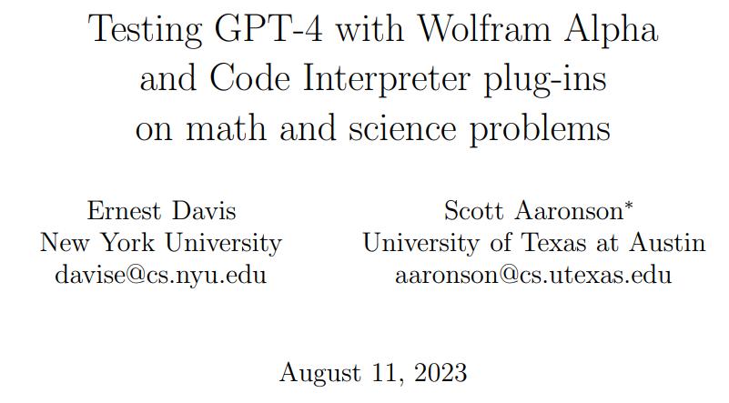 编辑:陈萍GPT-4 调用的第三方插件到底效果如何?有研究者对 Wolfram Alpha 、Code Interpreter 做了份测试。