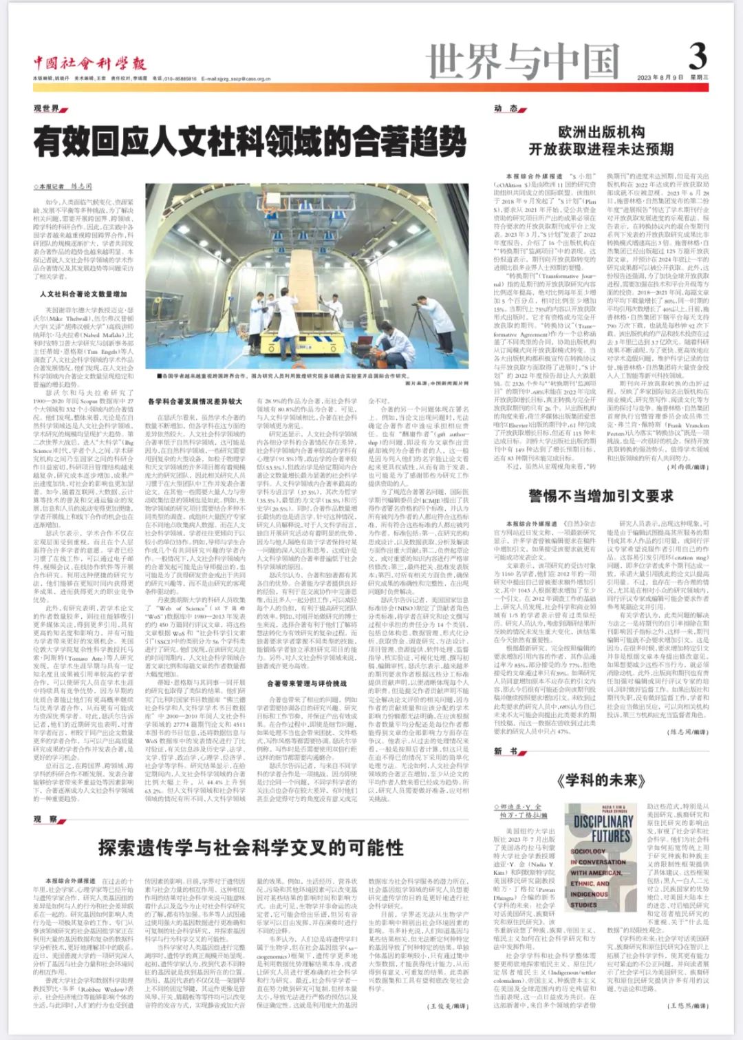 原标题:《世界与中国 | 有效回应人文社科领域的合著趋势》