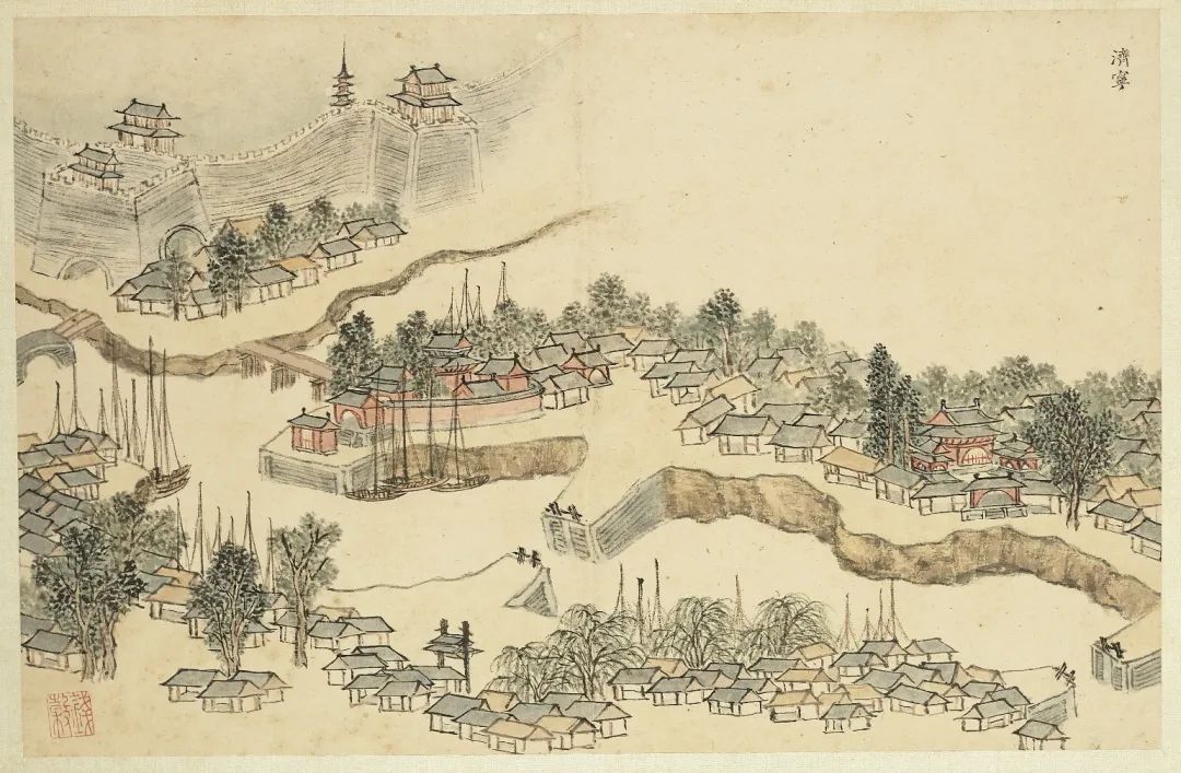 ▲ 张复《水程图》册之济宁据史料记载,自明代以来,大运河的开挖与贯通赋予了微山湖新的历史使命。湖上运河的开通,是大运河历史上一个新的里程碑。湖上运河从韩庄入口到济宁,纵横交错的运河上光大大小小的运河闸就有78座之多,因功能、作用不同,名称也有所不同,如节制闸、积水闸、减水闸等。如今,这些恰似大运河上闪闪发光的珍珠的河闸绝大部分都消失了,少数留下来的也失去了作用。