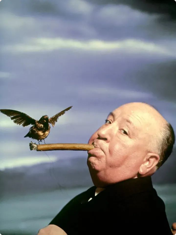 毋庸讳言,这一切都可能是另外一副面具,就像凶手一样急需隐瞒自己的动机,希区柯克设计出迷宫般的错误路径来迷惑追踪他的人。有一次,在他五岁的时候,他被父亲关进了牢房里,因为他太不听话了。希区柯克以一种令人厌倦的规律重复着这个故事,就像《公民凯恩》中的玫瑰花蕾—可以解决很多问题却没有实际意义。粉丝问他为什么拍电影时,他的回答很简单:“为了钱”。他对恶作剧的喜爱很幼稚:用出租车把六十多条腌鱼送到罗伯特·多纳特家里,或者把一批马送给彼得·洛(作为回报,希区柯克在凌晨三点钟的时候收到了三百只金丝雀),这听起来很有趣,但有时候就没这么简单了,他曾经把一个男人拷在摄影机上,给他喝掺了泻药的白兰地,并让他整晚留在制片厂里。