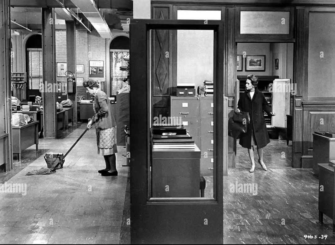 剧照《后窗》确实,这种自我指涉很高雅,但近乎一种艺术上的虚荣,有些人称赞希区柯克的《后窗》和《迷魂记》主要是关于看电影的电影,我对此持保留态度,希区柯克只是想尽可能地广泛吸引观众。所以我们应该感谢《后窗》中瑟尔玛·瑞特出演的冷酷的女按摩师,也要感谢《迷魂记》中芭芭拉·贝尔·戈迪斯出演的内衣设计师,她们是幽默的合唱者,活泼,无忧无虑,为影片灌注了新鲜的空气,否则这些电影很可能会变得复杂错乱,令人难以消化。这些女性继承了打字员和美甲师的形象,希区柯克曾经想要把这些人召集到英国电影之中。置身于美国大众之间,希区柯克从来没有体会过这种轻松自在(即使是他最喜欢的作品之一,《辣手摧花》中的城镇居民也显得有点僵硬和做作),所以他把对于自己的同情转移到了他所支持的角色身上。希区柯克在他所有的电影中都或多或少地出现过,就像文艺复兴的画家出现在壁画边缘的一排脑袋之间,但是如果你想听到他真实的声音,那么你听听瑟尔玛·瑞特看到对面雷蒙德·伯尔的公寓时所说的话吧:“他最好在血渗出来之前,把那箱子弄走。”