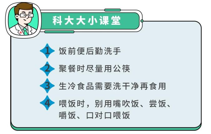 第一步:家庭聚餐时,趁虚而入家庭聚餐时,大家一起共用餐具,互相夹菜,甚至嚼饭喂孩子,都会给它创造传播的机会。