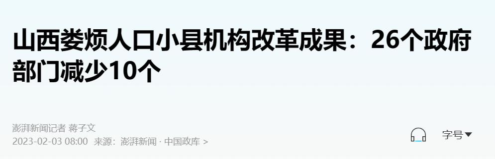 作为最早进行人口小县机构改革试点的山西省,多个县域编制被缩减,连领导岗位也没那么多了。