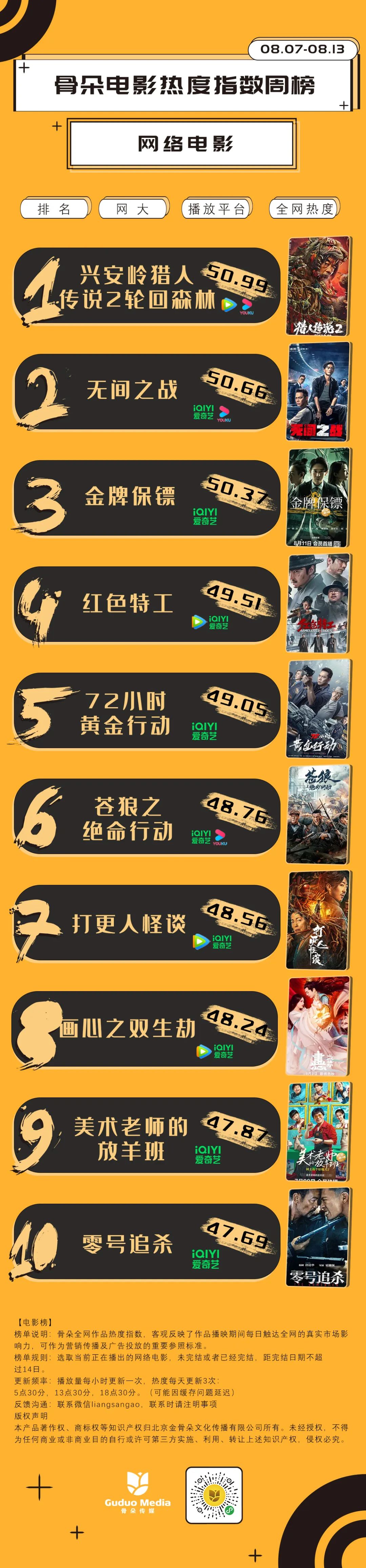8月7日-8月13日网影周榜数据解读: