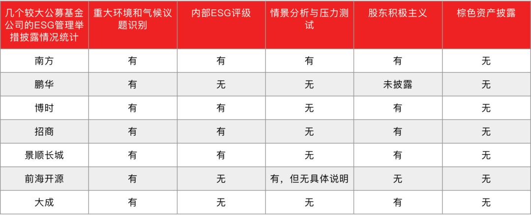 从更专业的角度讲,投资者可以考察基金公司有没有做出一些更具实质性的ESG举措。虎嗅统计了相关的信息,供参考。