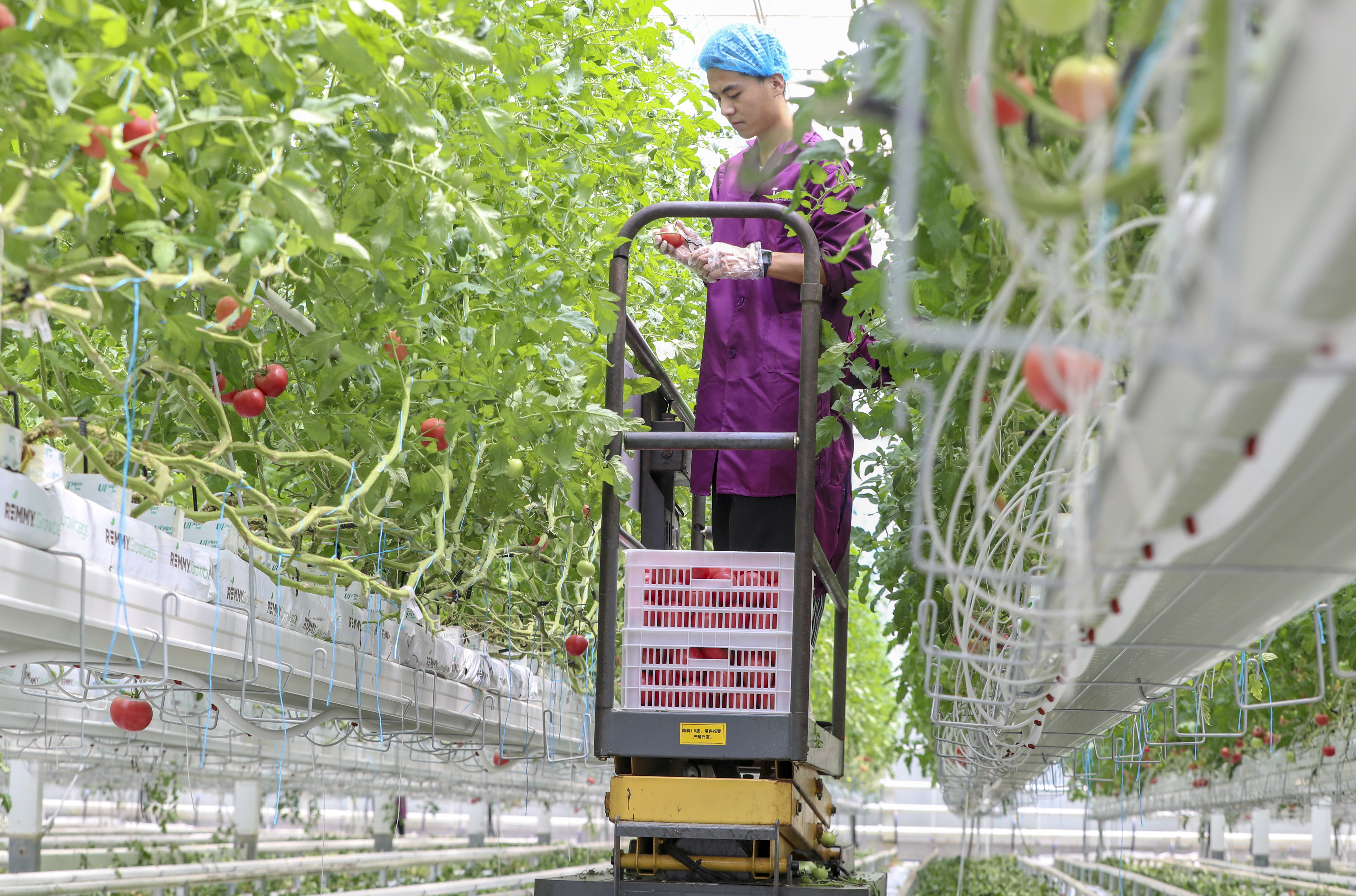 高温天气下,干农业最是辛苦。“我们在建设时就设计了一套整体运营模式,预埋了地下施肥管网,并搭建了双层大棚,以此应对极端天气。”园区生产经理陆必勇说,农业的根本出路在于现代化,数字化、智能化是重要路径。以大棚里的水肥一体化系统为例,传统模式下,西红柿亩产约1500公斤,而通过精准施肥,不仅能节省肥料,还能提高产量,亩产将提高至2000公斤,甚至更多。