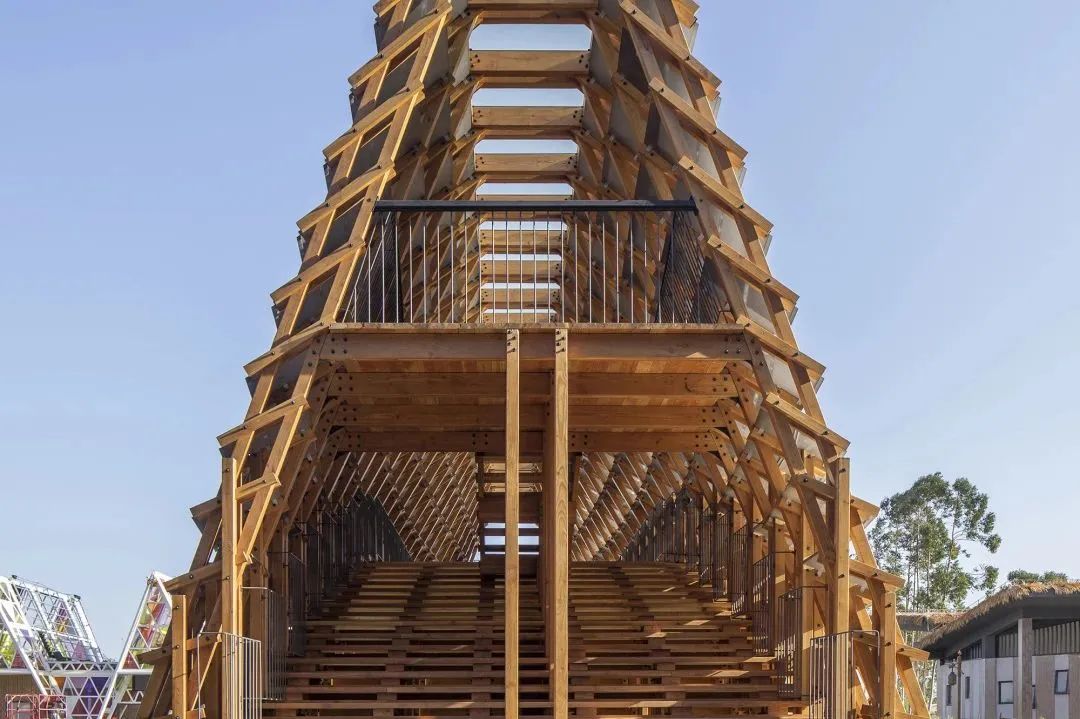 木桥是古劳水乡众多桥梁中的一座,采取以“自然材 - 木料”进行“拱桥”建造。设计师利用三根曲木大梁作为主结构件为渔船留出航高,外包铝板,顶部设置玻璃天窗引入天光,同时也在桥的两端设置了观景平台,让桥梁、河道、风景与日常活力相接。