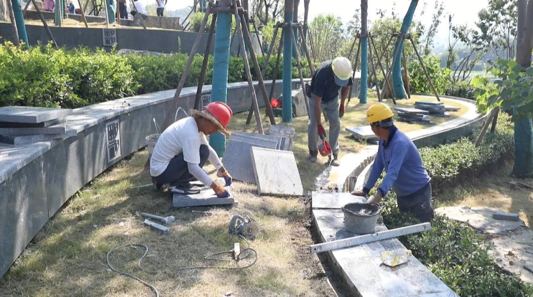 黟县东站站前广场及附属配套工程 施工经理 程作伟:当前我们主要工作是客运枢纽站的室内装修,地下车库无溶剂环氧地坪的施工,还有广场一些石材铺装的一些收尾工作。现在正值盛夏酷暑季节,我们通过合理安排作息时间,科学调动施工组织,来克服当前高温天气带来的不利影响,全力保障工程的施工进度。