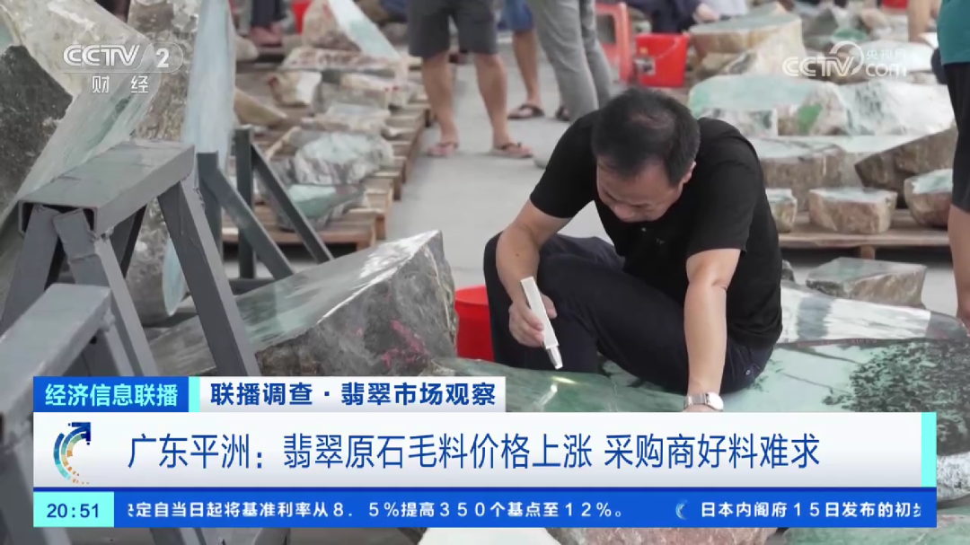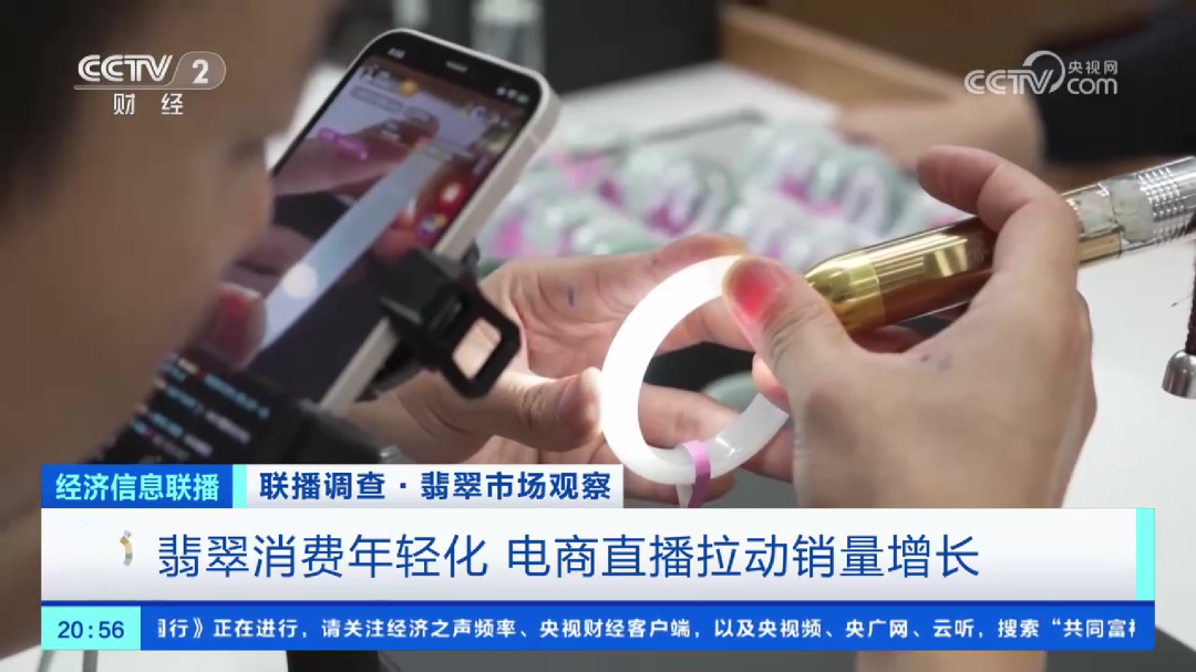 8月15日晚,央视CCTV-2财经频道《经济信息联播》节目以《翡翠市场观察》为题,从“翡翠原石毛料价格上涨 采购商好料难求”“翡翠手镯用料更加谨慎 价格明显上涨”“翡翠消费年轻化 电商直播拉动销量增长”三个篇章、长达7分半钟深度报道桂城平洲翡翠市场状况。