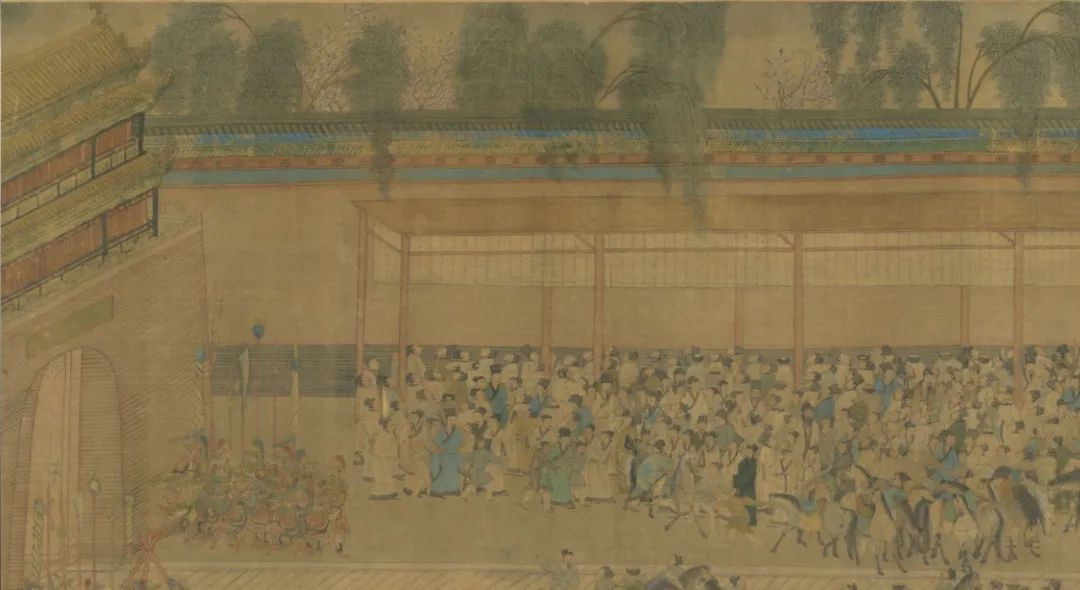 明 仇英 《观榜图》 局部 台北故宫博物院藏这天,有个穿着打扮都很高档的人来到店中,通过店主和这三位有钱的秀才联系上,假称有门路可以保证他们高中,每人须准备一千两银子。他们便约定:四日后取来银子核对。