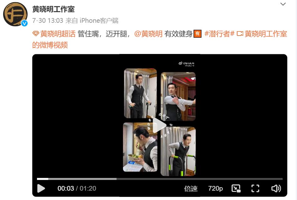 干练的形象并不是全靠造型师帮忙。剧播初期,工作室就晒出了黄晓明私下锻炼健身的视频。