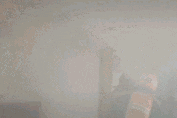 室内烟雾弥漫消防救援人员进入起火区域后用水枪内攻