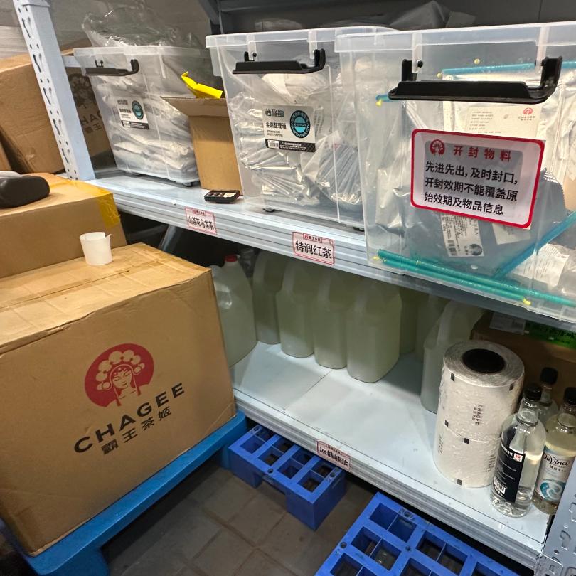 ✔比如,该店用于制作茶饮的食材原料都贴有标签,标明了制作时间、保质期限和储存条件等信息。