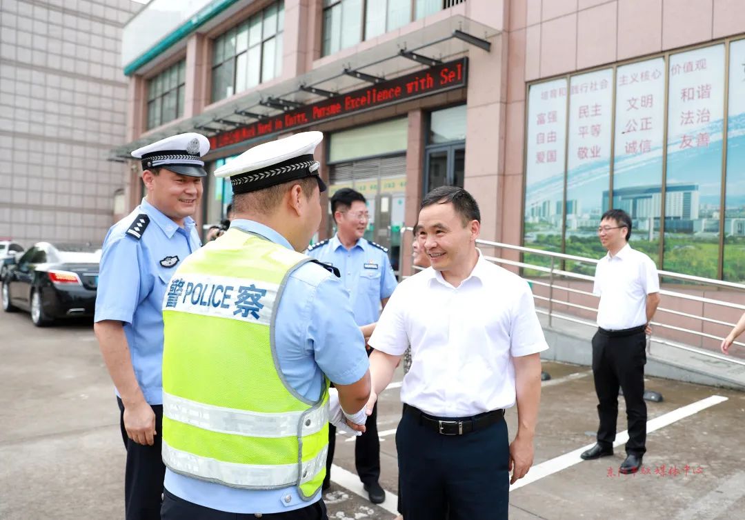 黄胜可等市领导一行在交警执勤点看望慰问执勤交警代表黄胜可、楼美姣一行来到市文化艺术中心建设现场,听取项目进展汇报,并与一线建设者交谈,了解日常工作和防暑降温等措施。黄胜可要求建设单位压实安全生产责任,在抓好工程进度的同时,更加关心工人健康,做好防暑降温保障措施。烈日当头,为保障城市交通正常运转,执勤交警在街头坚守岗位执勤。黄胜可来到吴宁东路与人民路交警执勤点,看望慰问执勤交警代表。他说,大家冒着高温坚守在第一线,工作十分辛苦。希望大家持续提升业务本领,更好服务人民群众。在城乡公交服务总站,黄胜可了解了驾驶员工作生活、后勤保障等情况,听取城乡公交一体化改革汇报。他要求相关单位继续保障好一线人员工作条件,合理安排作息;继续落实好惠民政策,让城乡居民充分享受政策红利。