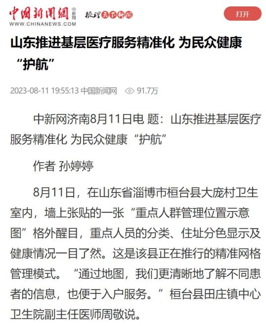 原标题:《中新网关注临朐:山东推进基层医疗服务精准化 为民众健康“护航”》
