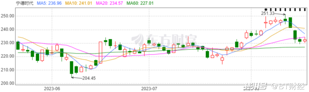 这则消息对行业影响巨大,加上宁德时代刚刚发布了今年的中报,推动宁德时代股价开始反弹,截至8月16日收盘,宁德时代股价为232.6元,回升0.56%。