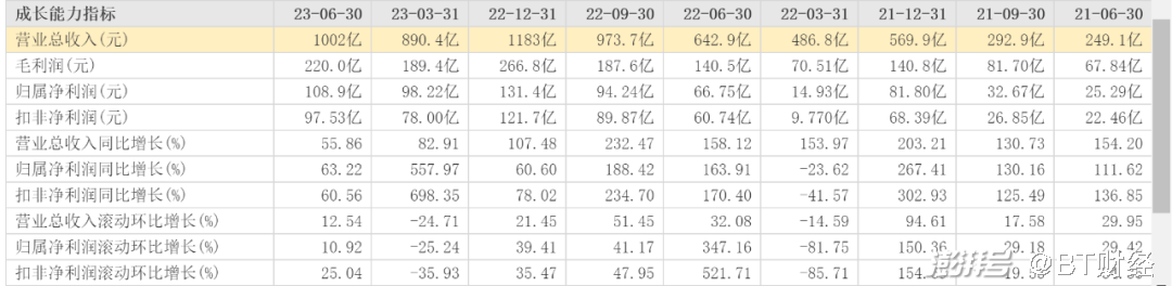 第二季度宁德时代总营收为1002亿元,同比去年同期的642.9亿元增长55.86%,相比第一季度略有下滑。但环比增长12.54%;归母净利润为108.9亿元,同比增幅为63.22%,此项增幅和第一季度相比下滑明显,但依然实现了10.92%的环比增长。其中扣非净利润97.53亿元,同比增长60.56%,环比增长25.04%。