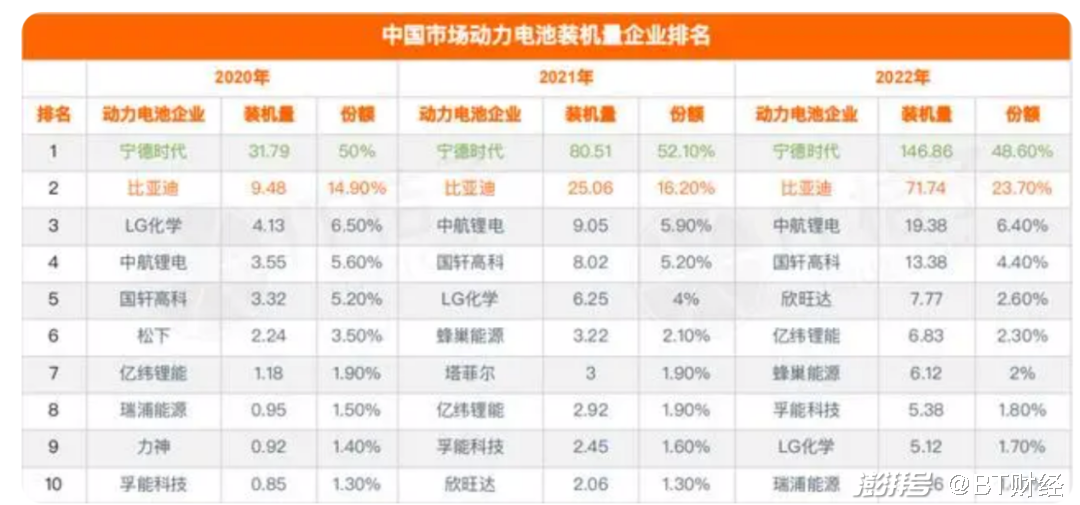 2023年1-4月,宁德时代动力电池装车量39.5GWh,占国内总装车量43%,同比增长29%。同期比亚迪动力电池装车量27.7GWh,占总装车量30%,同比增长89%。总体装机量上,宁德时代依然还保持较大优势。