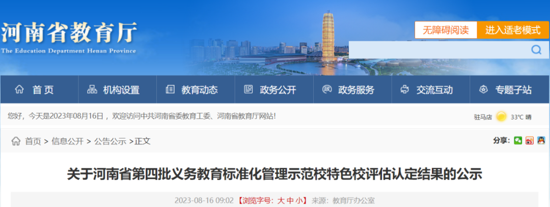 河南省第四批义务教育标准化管理特色校拟认定名单(驻马店部分)公布