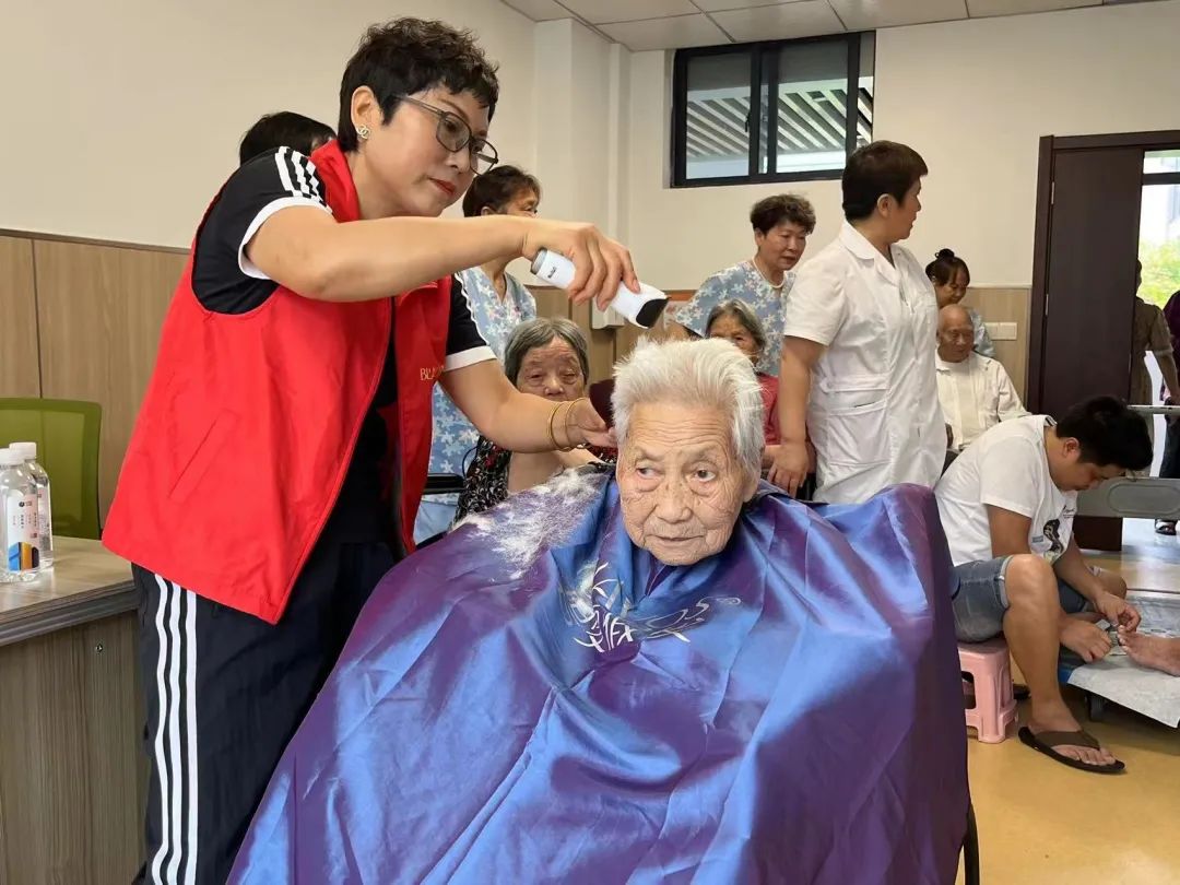 来自义乌市碧雯假发和廿三里街道“廿廿嫂”志愿者,现场为老人开展修剪指甲、免费理发、健康咨询等服务,让老人们感受到亲人般的关爱和温暖,其乐融融。“现在生活富裕了,老人们条件好了,养老院是他们的精神寄托,最需要的是亲友和爱心人士的陪伴。”廿三里街道养老服务中心负责人姜春苗表示,这是热心人士丁盛香的最大心愿,希望有更多的爱心人士能抽出时间来帮助老人,给老人一份关爱,让他们的晚年更加幸福快乐。