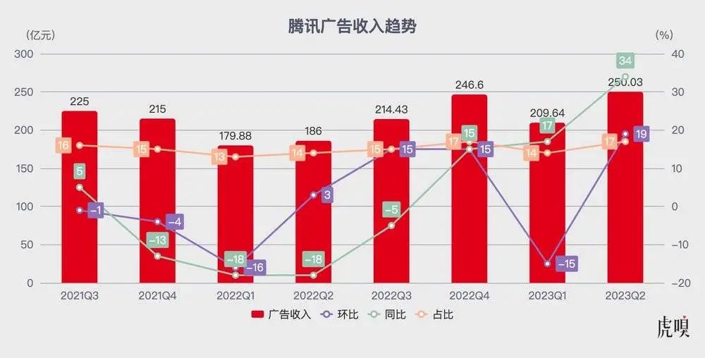 当然,腾讯该季财报最受瞩目的还属广告业务。