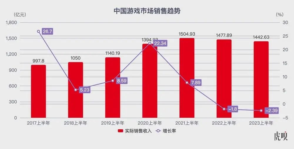伽马数据《 2023 年 1 ~ 6 月游戏产业报告》显示,2023 上半年中国游戏用户规模达 6.68 亿, 达到历史新高点;虽然国内游戏市场实际销售收入规模同比下降 2.39%,但环比增长 22.2%,市场回暖明显。