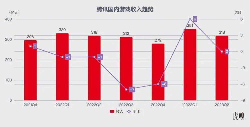 按照外界的叙事视角:既然版号寒冬的游戏行业在 2023 上半年回暖明显,腾讯游戏理应拉出更陡峭的增长曲线——然而,腾讯本土游戏业务却显出了些许疲态,收入 318 亿元,同比持平。