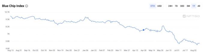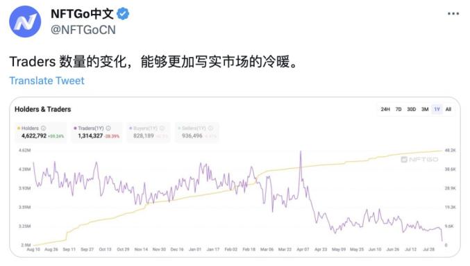 根据 NFTGo 的数据,近 7天盈利的用户仅有 4万多人,而亏损的用户高达 45万人。可见市场一直处在寒冬。