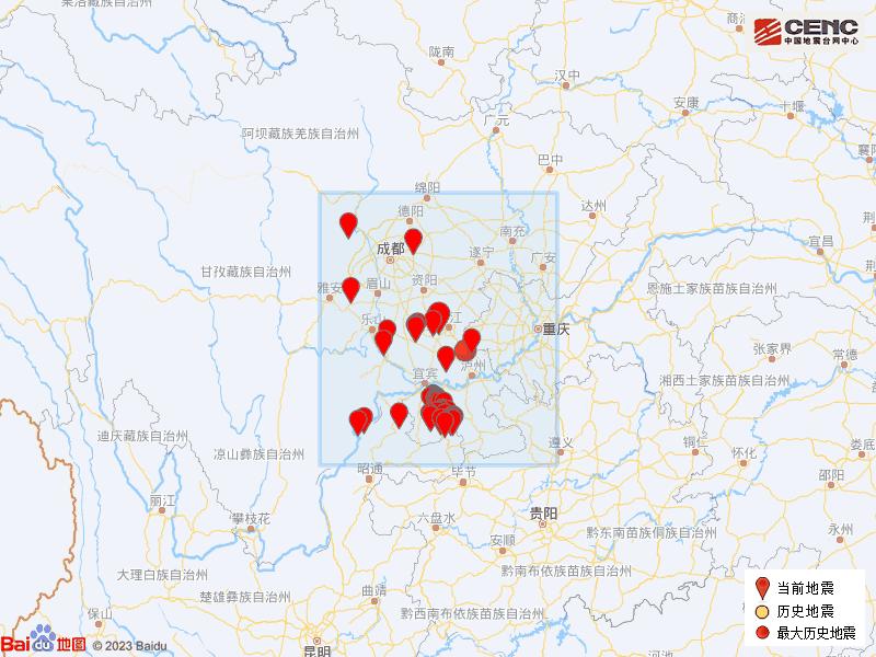 历史地震历史数据显示,震中周边200公里内近3年来发生3级以上地震共1次,最大地震是2019-06-17 22:55:43在四川宜宾市长宁县发生的6.0级地震(距离本次震中138公里),震源深度16.0千米。