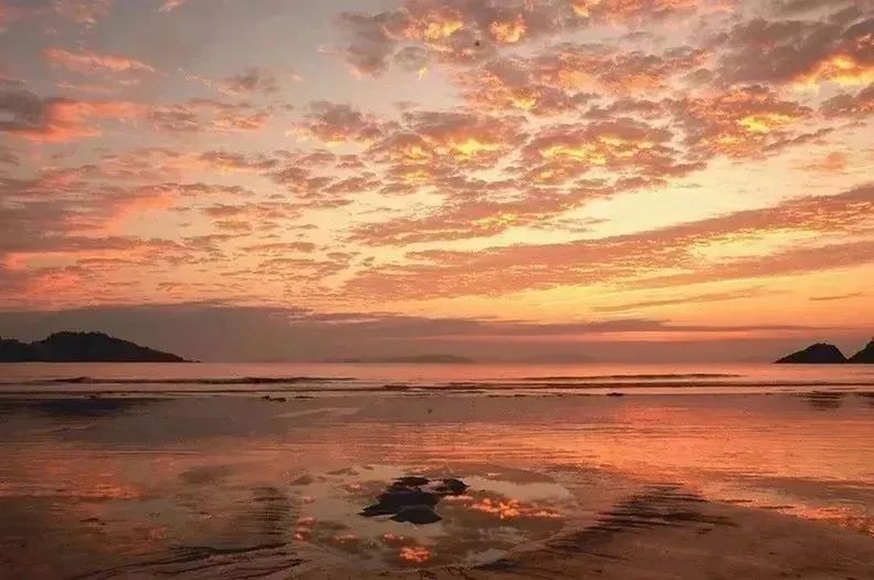 坎门后沙沙滩背山面海,记录着玉环人的青葱岁月。漫步在这片沙滩上,软软的沙子温暖着脚丫,在阳光下,熠熠生光。特别是日落的时候,走在海滩边,吹着迎面而来的风,夕阳照耀全身,迷失在这片黄金海里不能自拔。