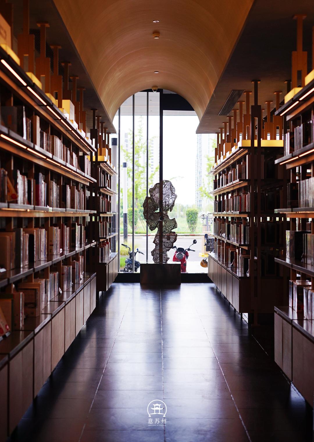 最接近人需求的书店,在苏州。悦季元来酒店里藏着一家可以“睡”的书店。设计灵感来自苏州园林。它也叫“朵云”。