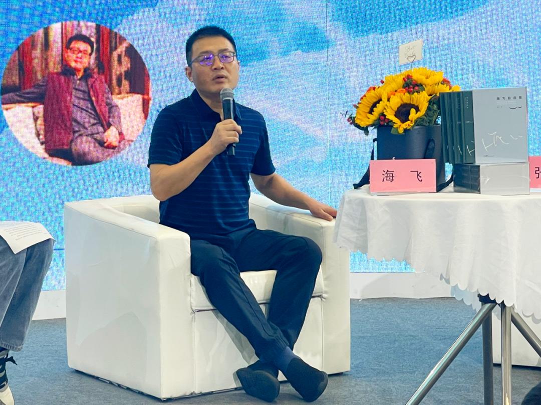 如果说让我概括一下海飞留给我的印象,就暂时先不谈作品,就谈这个人:他是一位作家,是一位非常优秀的小说家,一位非常优秀的编剧,同时像他自己说的,他是一个酿酒师,他在文学中用他的笔墨来为我们酿造生活的宝藏。可能历经更多的岁月之后,我们打开他的书,我们走进他的故事,走进他为我们塑造的人物,我们如同端起一杯美酒去感受生命沉淀下来的那些美好。同时他还是位雕刻师,他把历史、现实、青春、记忆还有他内心的那些成长的乡愁都雕刻进了他的文学作品,即使他后来注意力集中到了谍战题材的创作上,我们依然能够从谍战题材中的那些复杂的人性和跌宕起伏的爱恨情愁中,读到他对这个世界全部的善意,我觉得这种能够真正的把人雕刻进历史的作家,一定也会写入我们的文学史册。