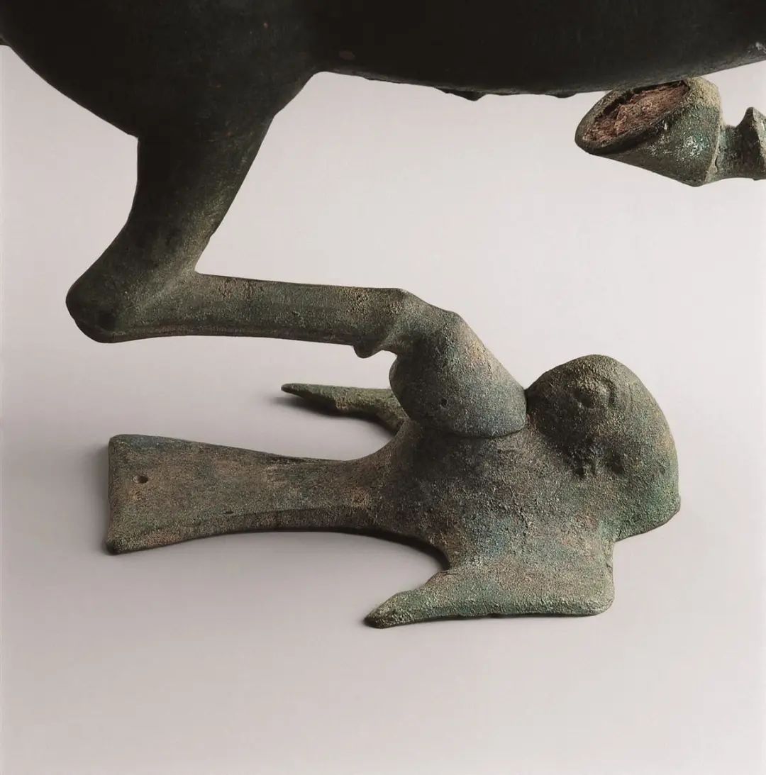 其全身的着力点在超越飞鸟的那一足上,准确地掌握了力学的平衡原理,体现了先民卓越的工艺技术水平。
