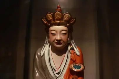 用景德镇中国陶瓷博物馆的文物“沉思罗汉”表达“无语”。