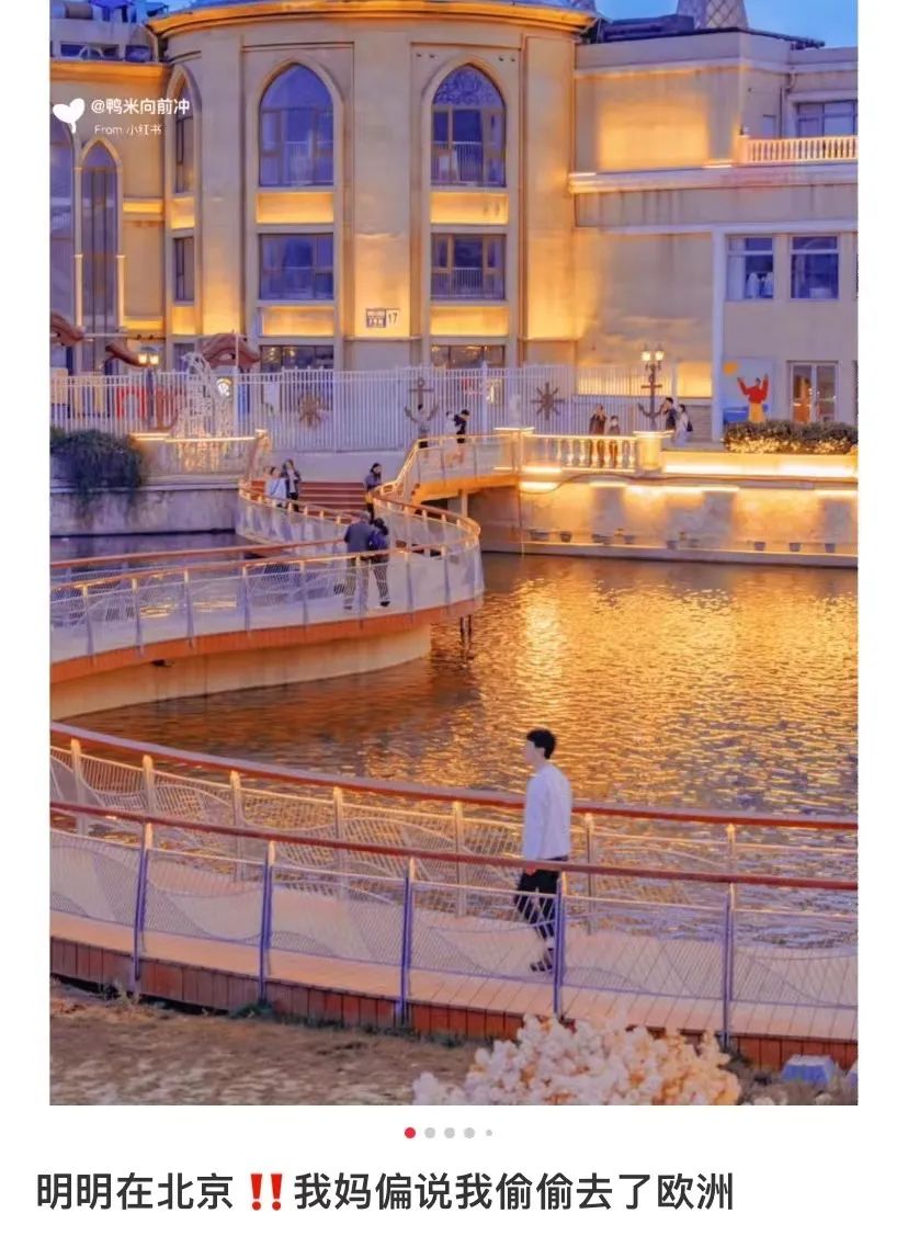 如今,这座位于亮马河畔的蓝色港湾,已然成了年轻人的放松据点,他们在园区里的欧式建筑前假装度假,并以小某书文案将这座大型购物中心,包装成“浪漫”、“松弛”和“北京人的爱乐之城”。甚至为了避免误会,他们还会强调,“这里真不是国外,而是北京”。