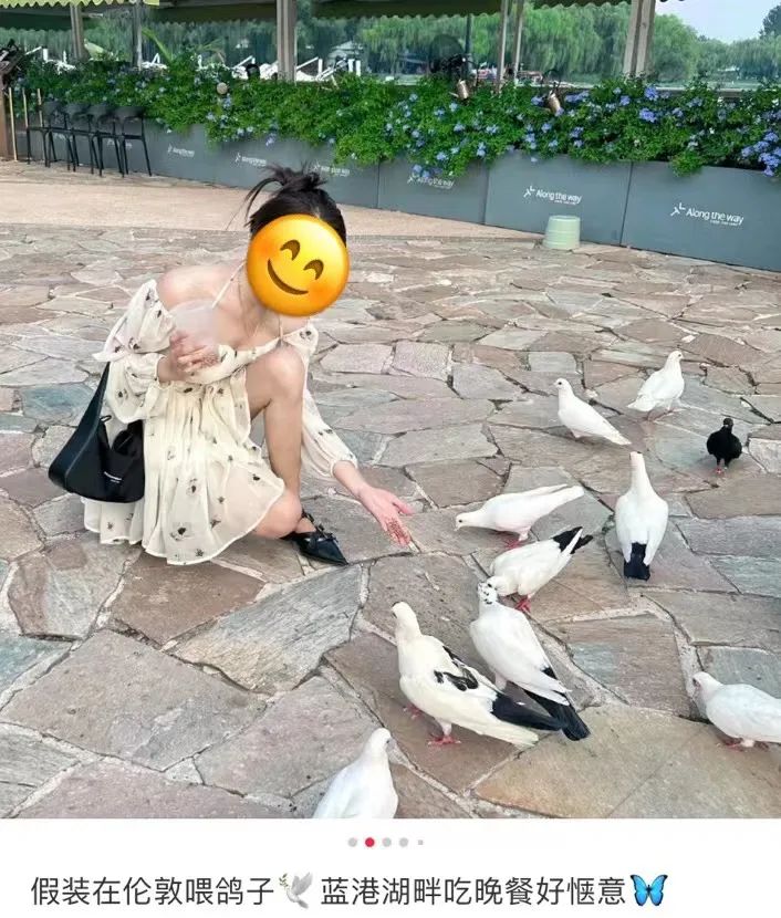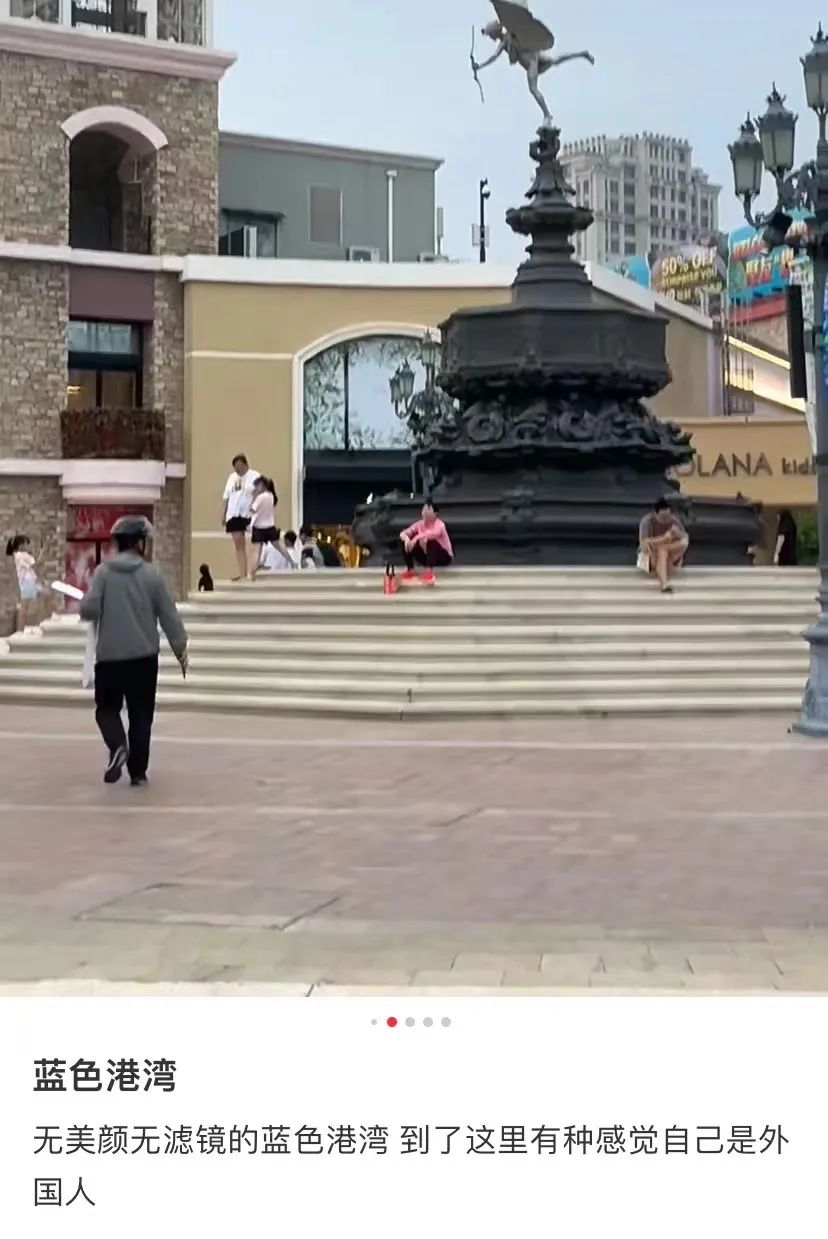 bubble有次遇到一只把自己当孔雀的鸽子,还在广场上开屏在没有出行计划的周末,bubble就会开车来到“蓝港度假区”。除了鸽子,bubble也喂过锦鲤和黑天鹅,甚至去坐了一圈喷泉附近的小火车。“在小某书上晒出蓝港喷泉和小火车的打卡,才算完成了蓝港度假的闭环。这甚至是一个都市丽人当之无愧的防伪标识。”