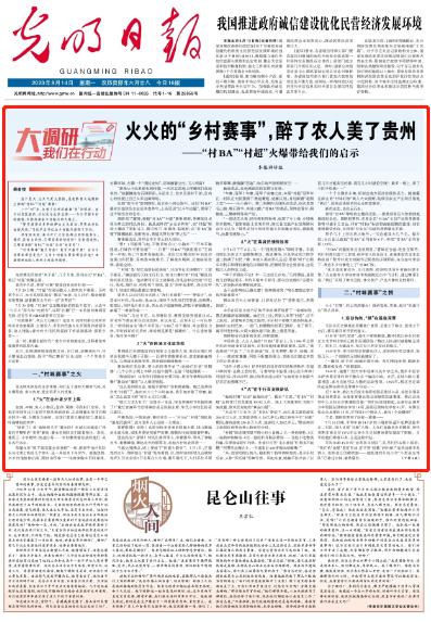 《光明日报》刊发《【大调研,我们在行动】火火的“乡村赛事”,醉了农人美了贵州 ——“村BA”“村超”火爆带给我们的启示》。媒体融合是时代所向、大势所趋。谁能顺应大势引领全媒体时代,谁就把握了战略主动。当前,各类新媒体新应用新业态不断涌现,其跨时空、大容量、开放性、交互性、移动化等传播特点,迅速成为信息传播的主渠道、主平台。只有推动传统媒体和新兴媒体在内容、渠道、平台、经营、管理等方面持续深度融合,才能不断提升传播质效、壮大主流舆论。