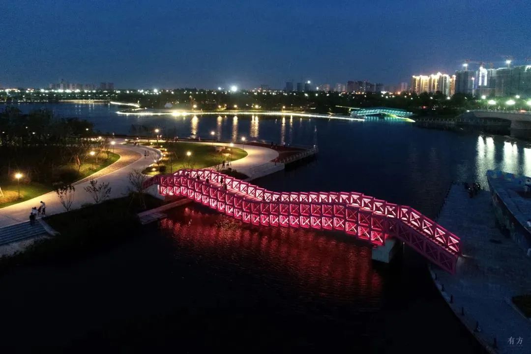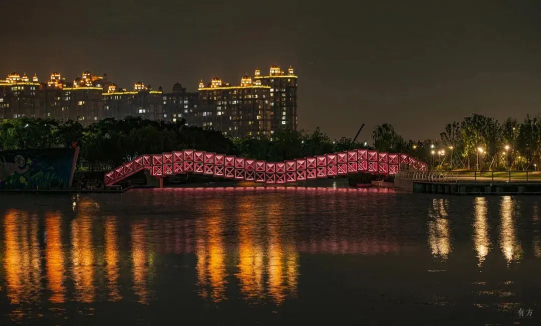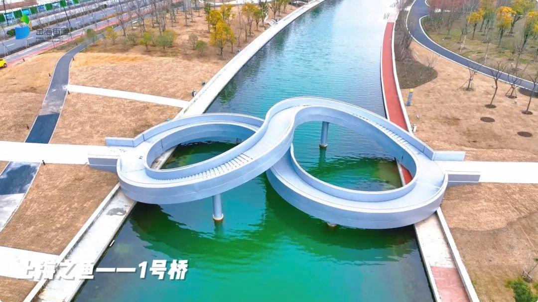 “CP感”极强的上海之鱼红、蓝桥是位于上海之鱼西南角的两座人行桥