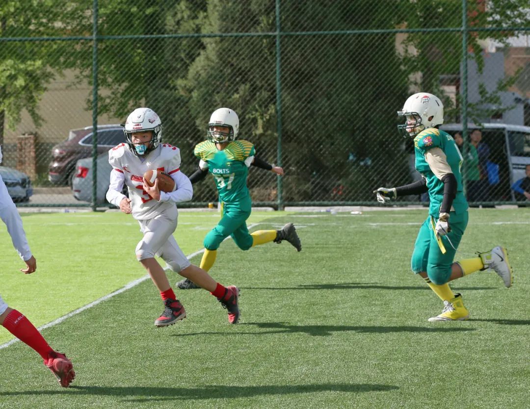 徐三强打的是外接手(Wide Receiver),这个位置要求球员在进攻的时候,从两翼高速插入对方阵型的后面,寻求接球的机会。“小快灵”的他跑位灵活多变、速度很快。他说自己是放弃了进入职业足球队的机会,选择了橄榄球。