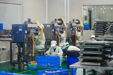 劲家庄食品生产车间员工在包装产品。