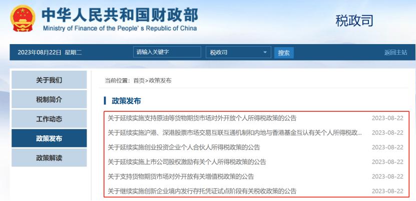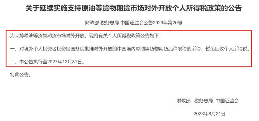 延续实施支持原油等货物期货市场对外开放个人所得税政策;