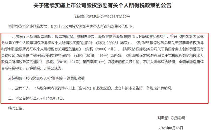 为继续支持企业创新发展,财政部、税务总局发布延续实施上市公司股权激励有关个人所得税政策的公告。