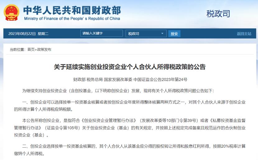 上述公告同样将执行超过4年,执行时间至2027年12月31日。延续实施创投企业个人合伙人所得税政策