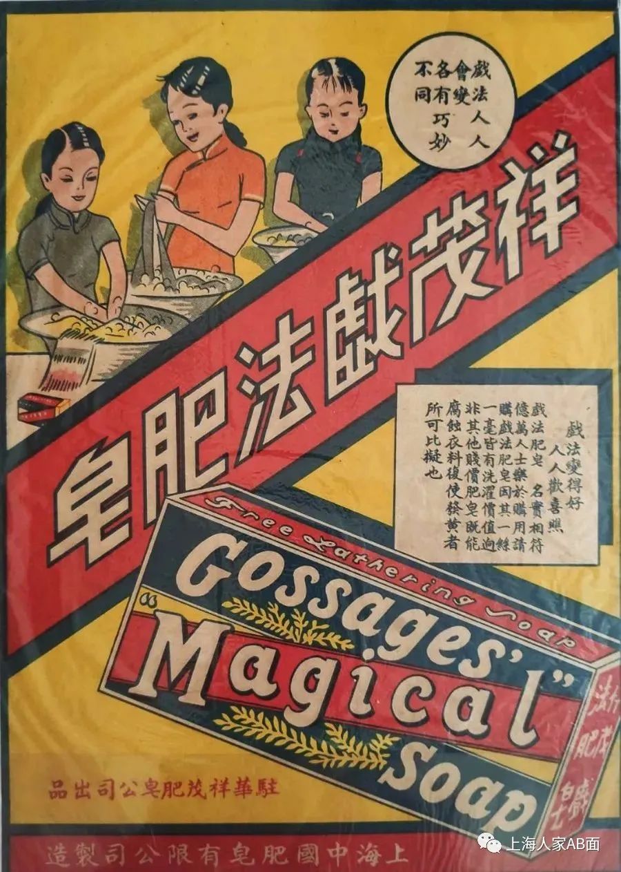 图说:现代肥皂登陆上海。现代意义的肥皂是从海外来的,它大批进入上海是在1903年。牌子有祥茂、北忌、日光和绍昌,还有我们熟悉的力士;这些英国货是由利华兄弟公司(LEVER BROTHERS LID.)、高士奇父子公司(WILLIAM GOSSAGE & SONS LTD.)等企业生产的。1923年,利华在上海成立中国肥皂公司,注册资本额为800万银元,并于1925年开始在沪生产肥皂。该公司为远东最大的制皂企业,年销量占据全国的一半。后来才知道,这家企业就是我去过的上海制皂厂。1952年,因欠借款税款而陷入困境的中国肥皂公司将企业转让政府,改名为华东工业部中国肥皂公司;改为现名是在1955年的7月。