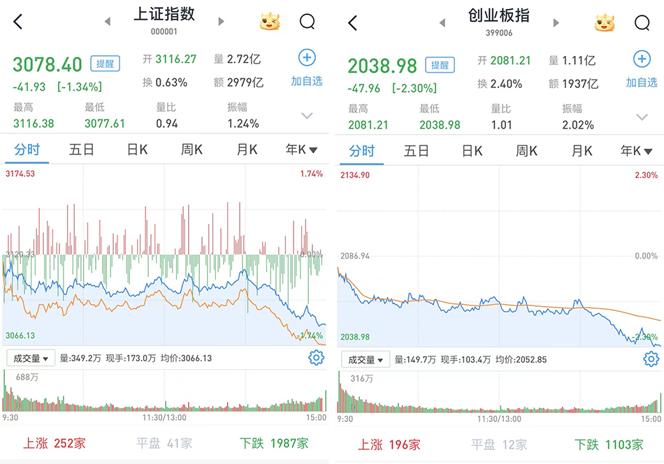 A股市场尾盘跳水跌幅扩大:逾4500只个股收跌,北向资金净流出超百亿