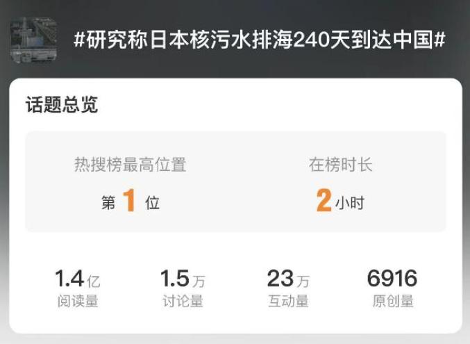 今天上午,一则“有研究模拟日本核污水排海扩散过程:240天到达中国沿海,1200天后覆盖北太平洋”的消息,引发网友热议。