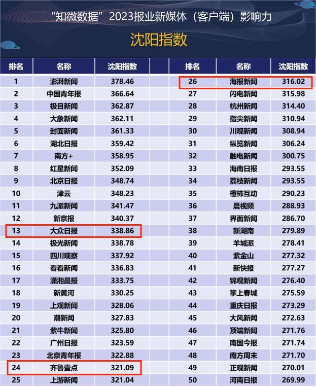 新媒体百强榜单发布:大众日报列省级党报前五,领跑山东媒体