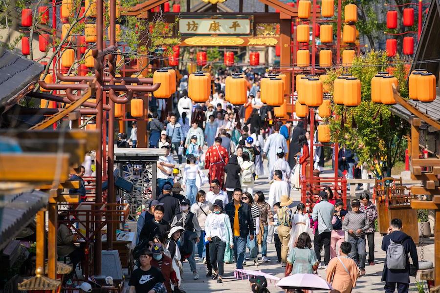 龙湾温泉度假区的启唐城沉浸乐园始终本着弘扬中华传统文化的初心,以古风唐韵的建筑和更加符合当下人们的审美情趣、心理特点的沉浸式文旅形式,创造出适应现代生活与时代特征的节日文化元素,通过匠心独具的仪式和表现形式展现在游客面前,提升中华文化影响力,坚定文化自强与自信。