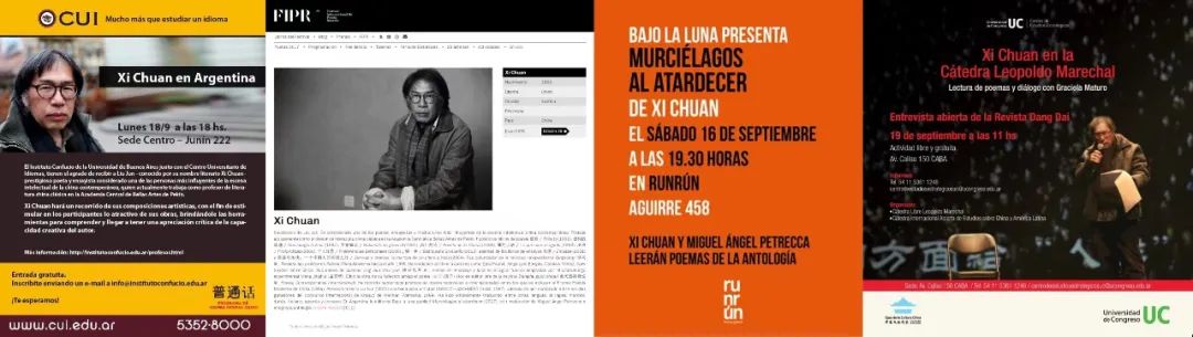 西川的西班牙语诗集《夕光中的蝙蝠》(上)和西川在拉美的介绍页(下)也就是说博尔赫斯借给我们一个眼光,这个眼光就是深入地进入过去文学或者文化的秘密。文学当中有无穷的秘密,但是这些秘密随着伟人们的过去,慢慢朝你关上了大门,直到忽然有一个人出现,就像博尔赫斯这样的人出现,他开始重新进入到这样一个秘密当中。所以在这一点上,我觉得博尔赫斯对我们来讲都有巨大的意义。
