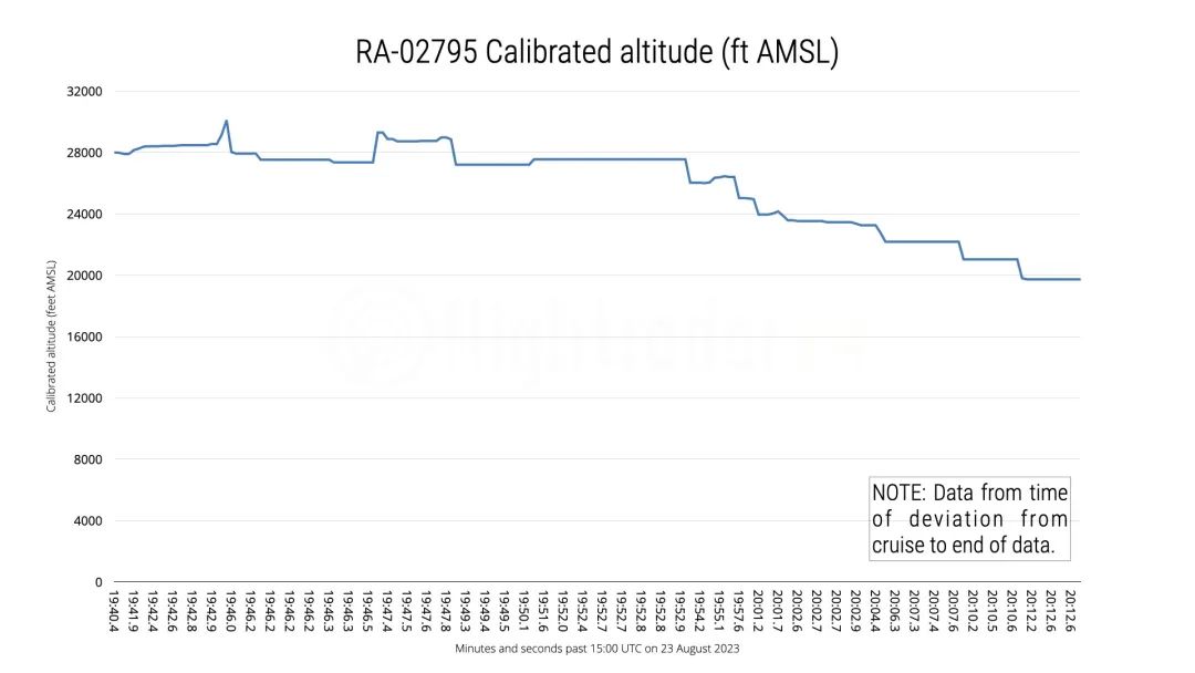 相关数据显示,飞机在28000英尺(8534.4米)的高度平稳飞行,并进行了一些轻微的高度变化。但从18时19分开始,飞机的高度骤然下降,在数据传输停止前的大约30秒内下降了8000英尺(2438.4米)。